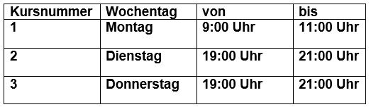 Diese Kurse finden fortlaufend statt, Schulferien ausgenommen.
